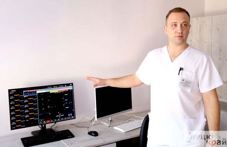 – В отделении установлено новое современное оборудование, – отметил Дмитрий Александрович. – К примеру, центральная система мониторирования. Все мониторы, отражающие показатели состояния пациентов, объединены в единую сеть. Находясь в ординаторской либо в другом служебном помещении, медперсонал отделения может в режиме реального времени наблюдать за гемодинамическими показателями пациента.